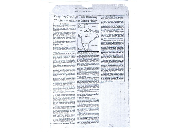- 1981 - 1985: Establishment of the first Software Technology Parks of India (STPI) in Electronic City. Establishment of Electronic City in Bangalore, which attracted companies like HP, Siemens, Wipro, Infosys, ITI, Motorola, TATA, NTTF etc.