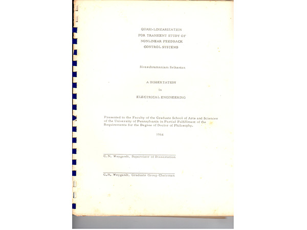 1964 : Completed Ph.D. from Moore School of Electrical Engineering, University of Pennsylvania in Philadelphia, USA with the support from Government of India and encouragement from Dr. Homi J Bhabha.