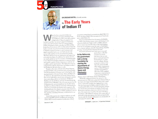 Dr. S. Srikantan in the year 1961 was promoted as a Scientific Officer and was sent to further his studies to the US with the guidance of Dr. Homi J Bhabha and support from the Government of India. He completed his Masters in Electrical Engineering and also completed his Ph.D. from Moore’s collage, University of Pennsylvania in Philadelphia, USA in the year 1964. Dr. S. Srikantan, returned to India after his Ph.D. and led a team of fresh graduated engineers and scientists as a group leader, to work on TDC-12 (Trombay Digital Computer – 12) ‘The first Indian-built electronic digital computer’ commissioned by Vikram Sarabhai at Bhabha Atomic Research Centre, between the year 1964 – 1968 and the computer was released on January 21, 1969.
